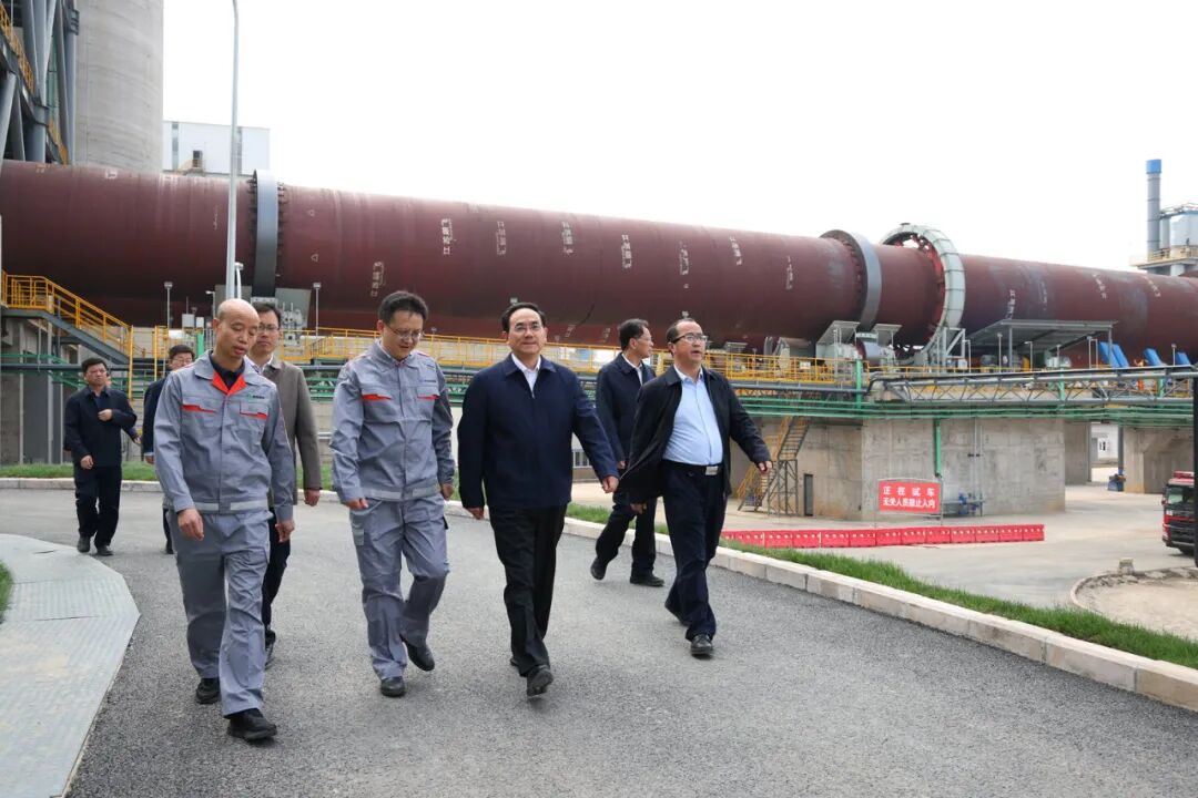 图为徐麟在福泉市考察瓮福化工公司磷石膏循环经济项目,详细了解磷石膏产业化利用、生态环境保护等情况。