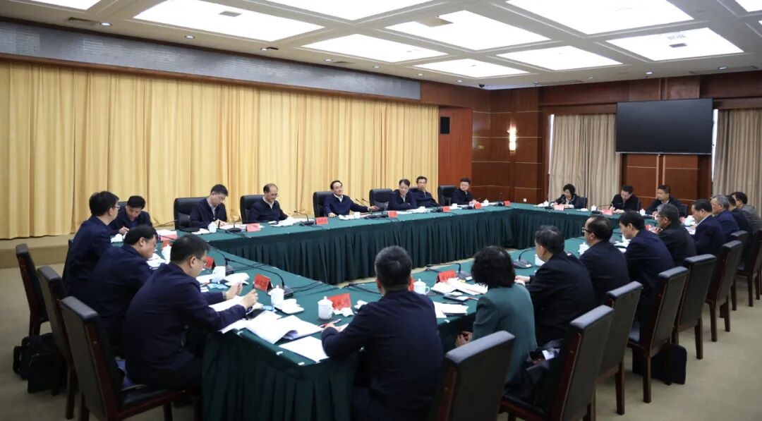 图为徐麟主持召开座谈会,听取“富矿精开”工作推进情况。