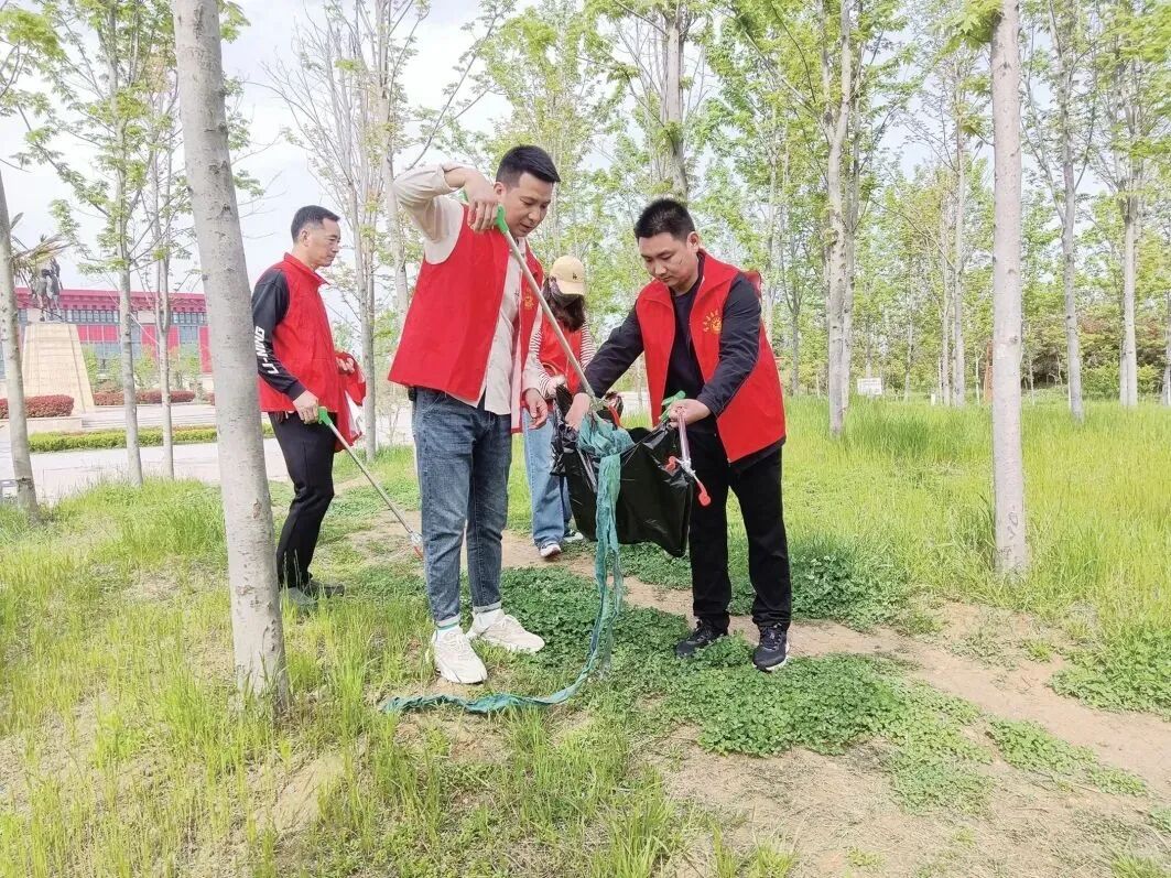 4月21日,河南省宝丰县自然资源局组织党员干部到君文湿地公园捡拾垃圾,为建设清洁美丽的地球家园贡献力量。张永强 李亚黎 闻丹丹 文/摄