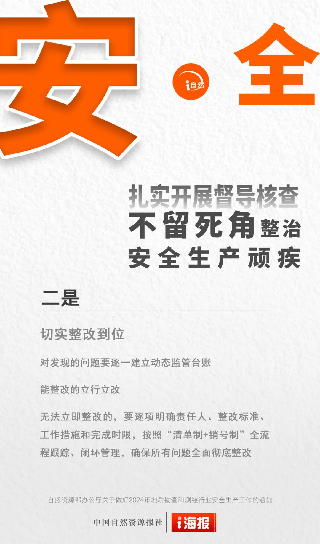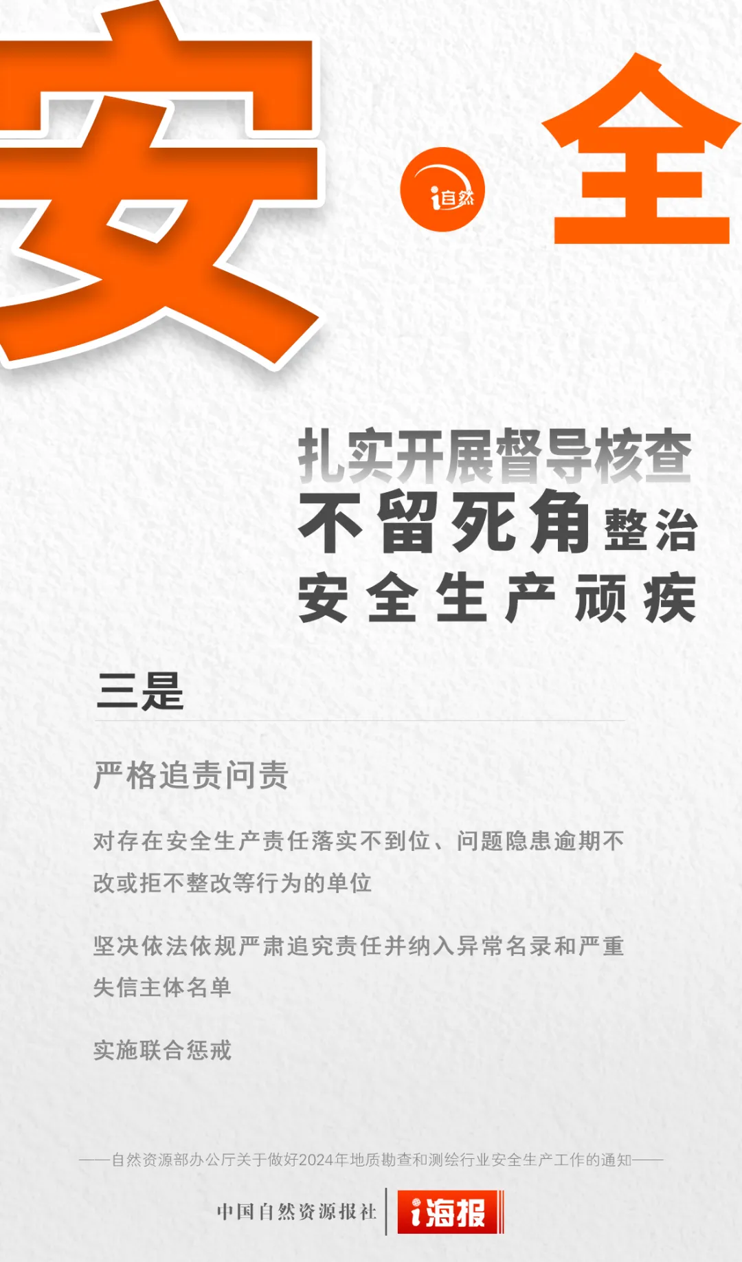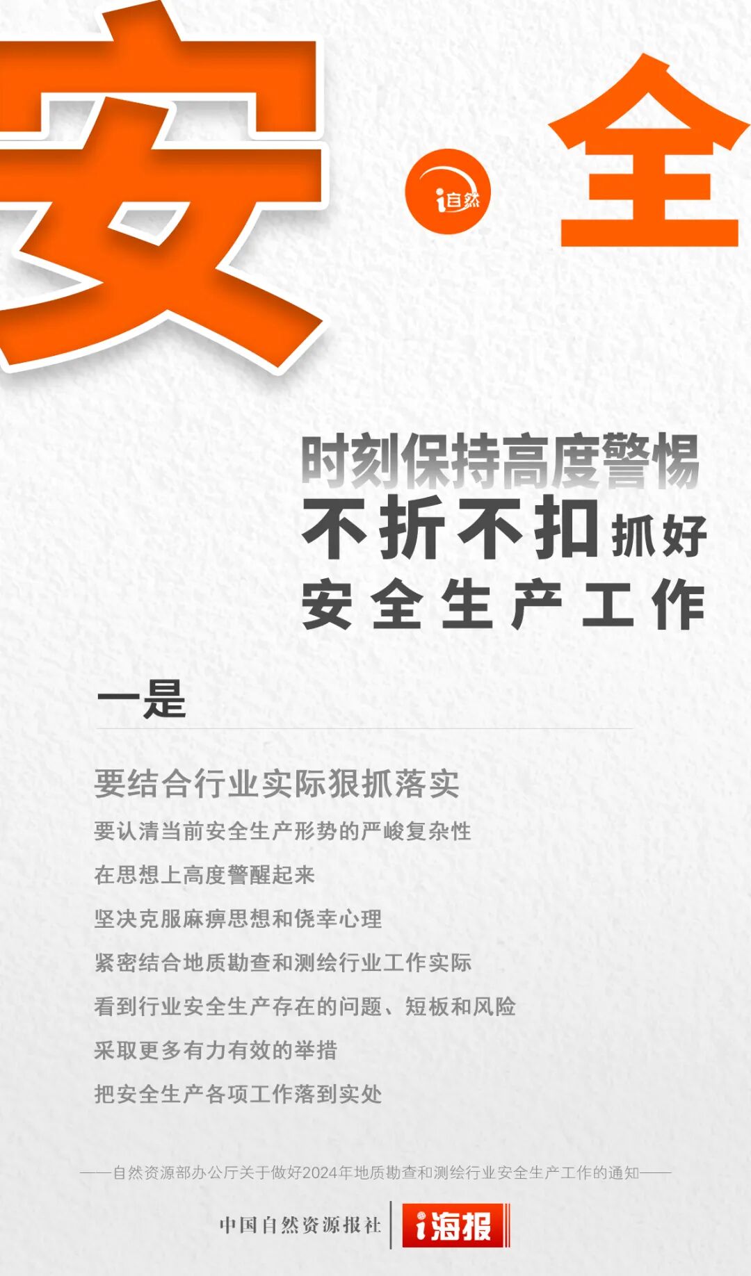 2024年是中华人民共和国成立75周年,是实现“十四五”规划目标任务的关键一年,做好安全生产工作责任重大。为深入贯彻落实习近平总书记关于安全生产系列指示批示精神和党中央、国务院加强安全生产有关决策部署,抓紧抓实地质勘查和测绘行业安全防范和管理工作,确保行业安全生产形势持续稳定,《自然资源部办公厅关于做好2024年地质勘查和测绘行业安全生产工作的通知》印发。
