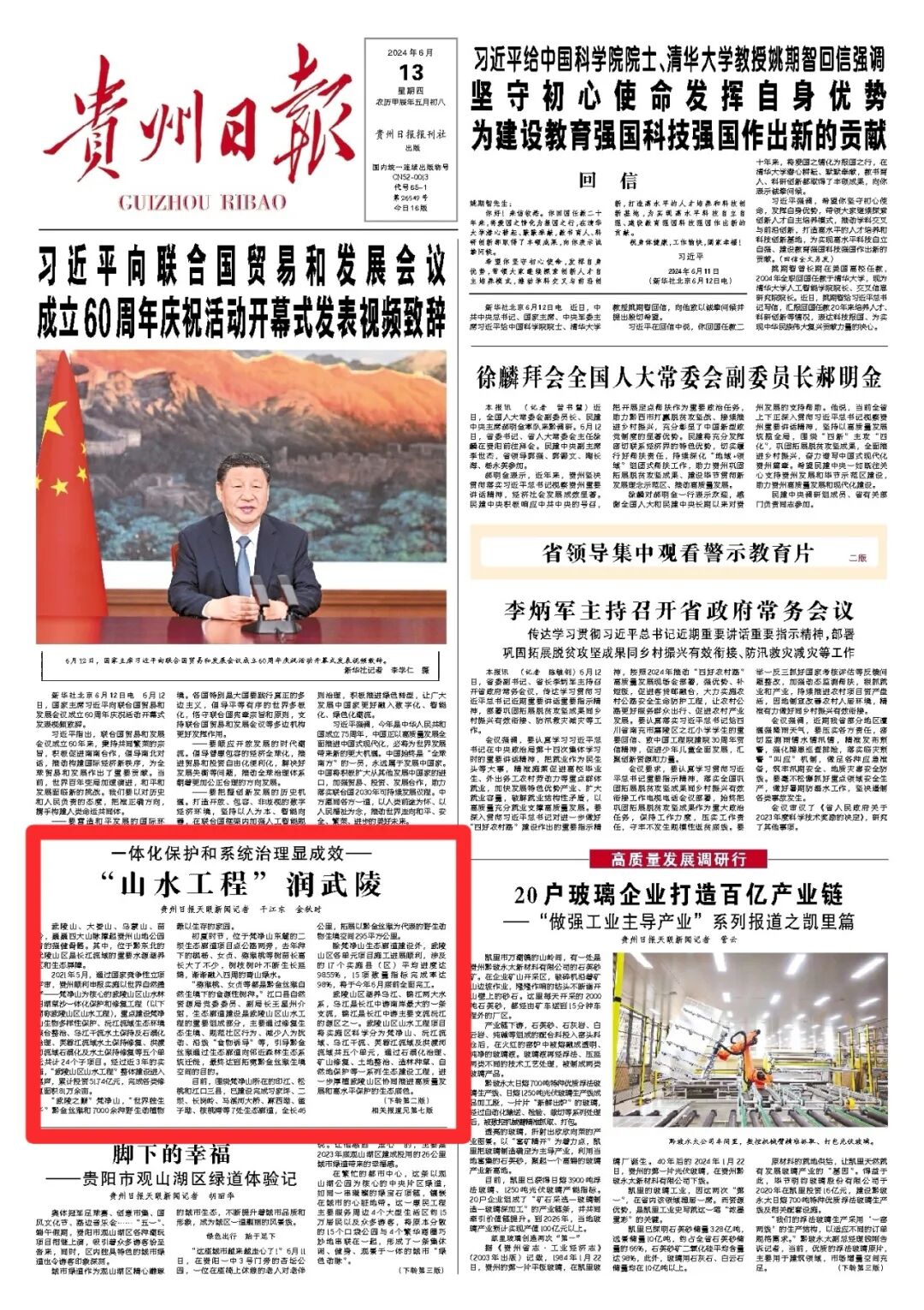 贵州日报头版 | 一体化保护和系统治理显成效——“山水工程”润武陵