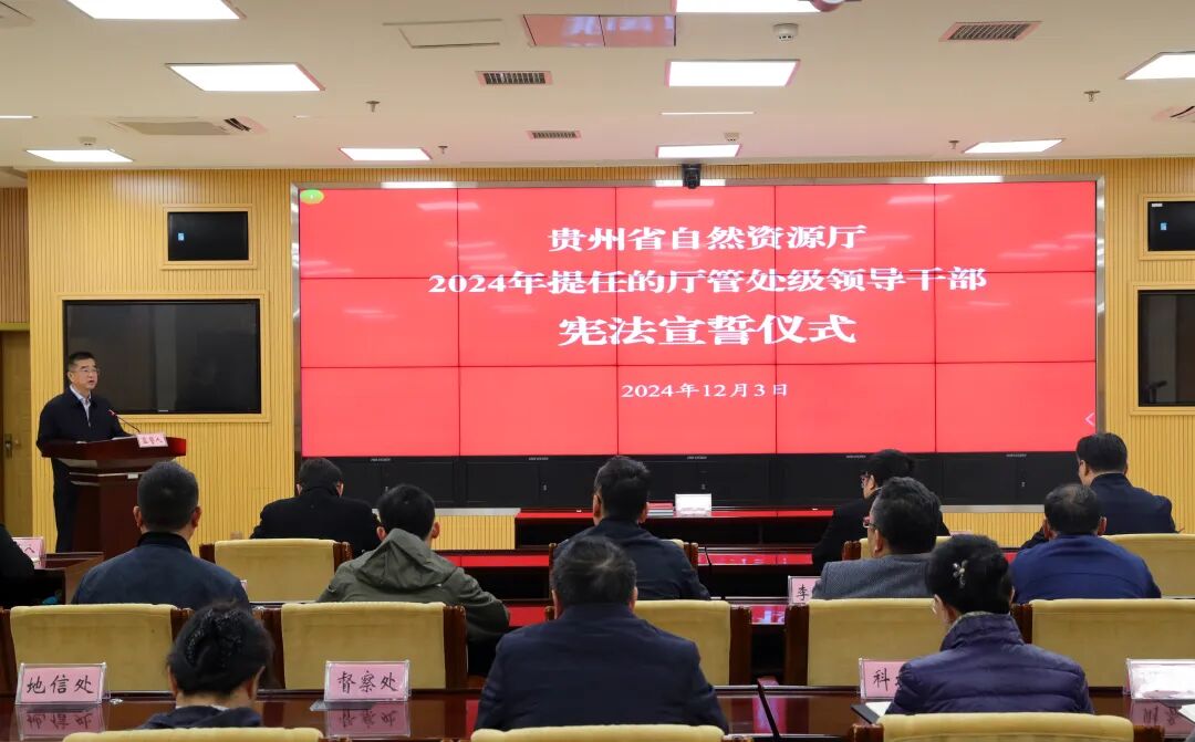 为贯彻落实习近平法治思想、习近平文化思想、习近平生态文明思想,12月3日上午,省自然资源厅举行2024年提任的厅管处级领导干部宪法宣誓仪式。厅党委书记、厅长周宏文监誓并讲话。二级巡视员、厅机关党委专职副书记姚泓主持仪式。