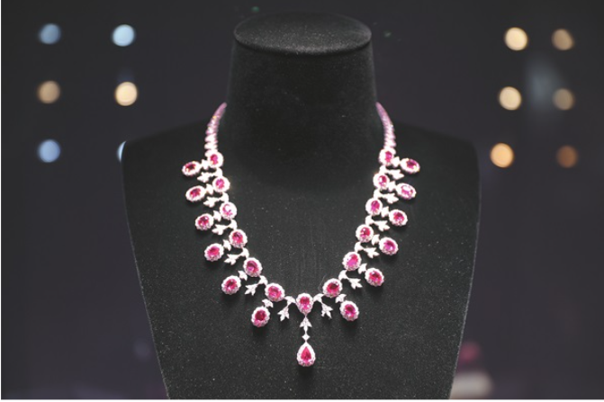 第一单元“大自然的馈赠——矿物宝石”,从宝石的形成过程和审美标准入手,讲述了宝石的前世今生。此次展览的一大特色在于,巧妙地将宝石原石与对应的珠宝首饰作品搭配展示,这种方式既呈现了宝石的自然之美,又体现了人类加工的精湛技艺。观众不仅能够直观地看到宝石从原石到精美珠宝的华丽蜕变,还能激发他们对宝石矿物世界的好奇心和探索欲望。原本粗糙不起眼的石头,在艺术家的精心雕琢下,仿佛沉睡的精灵被唤醒,焕发出无与伦比的美丽。