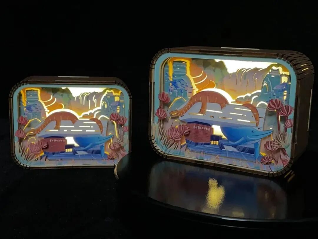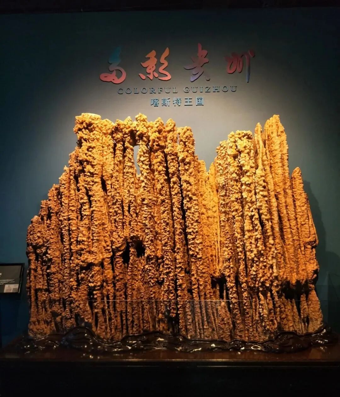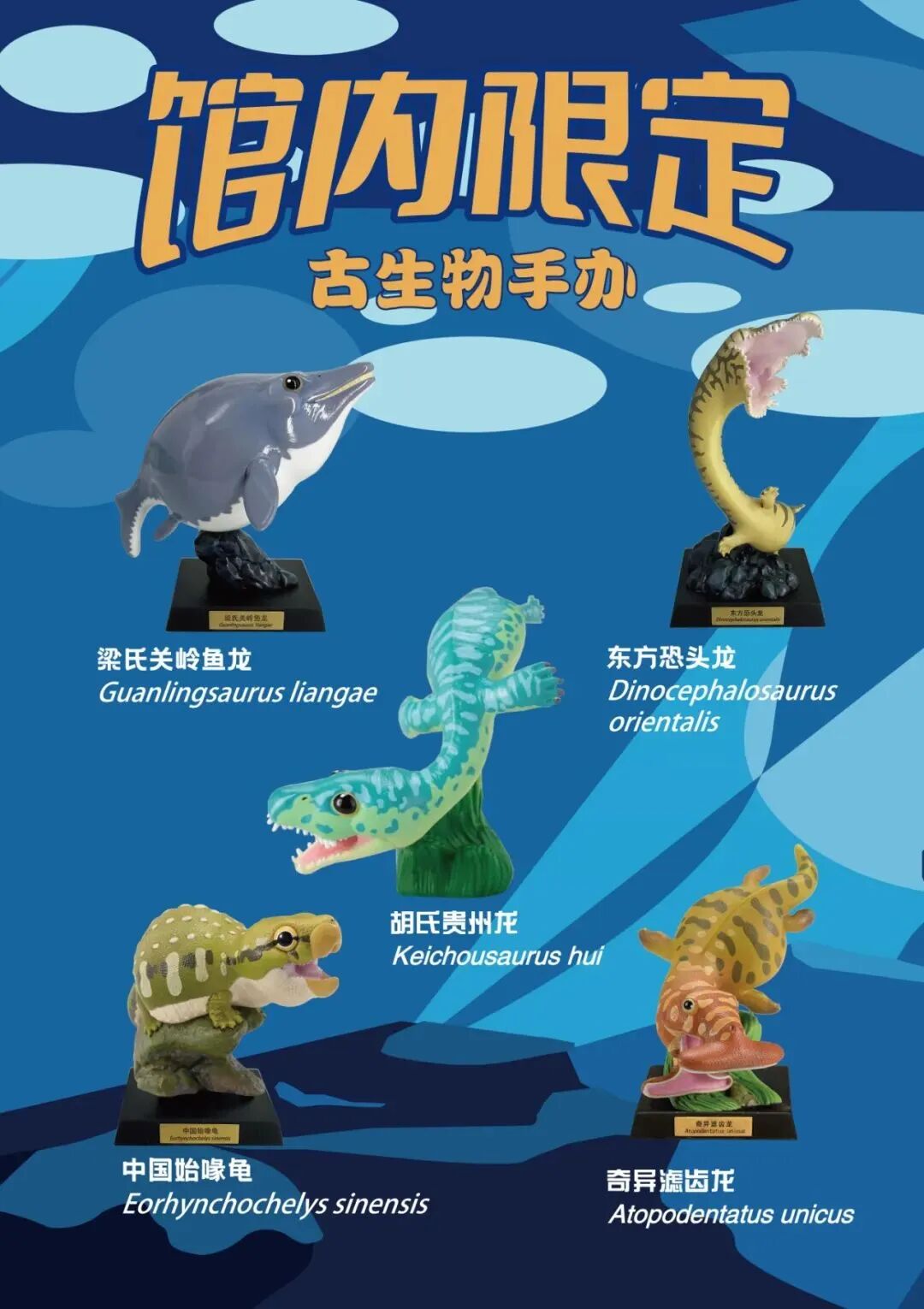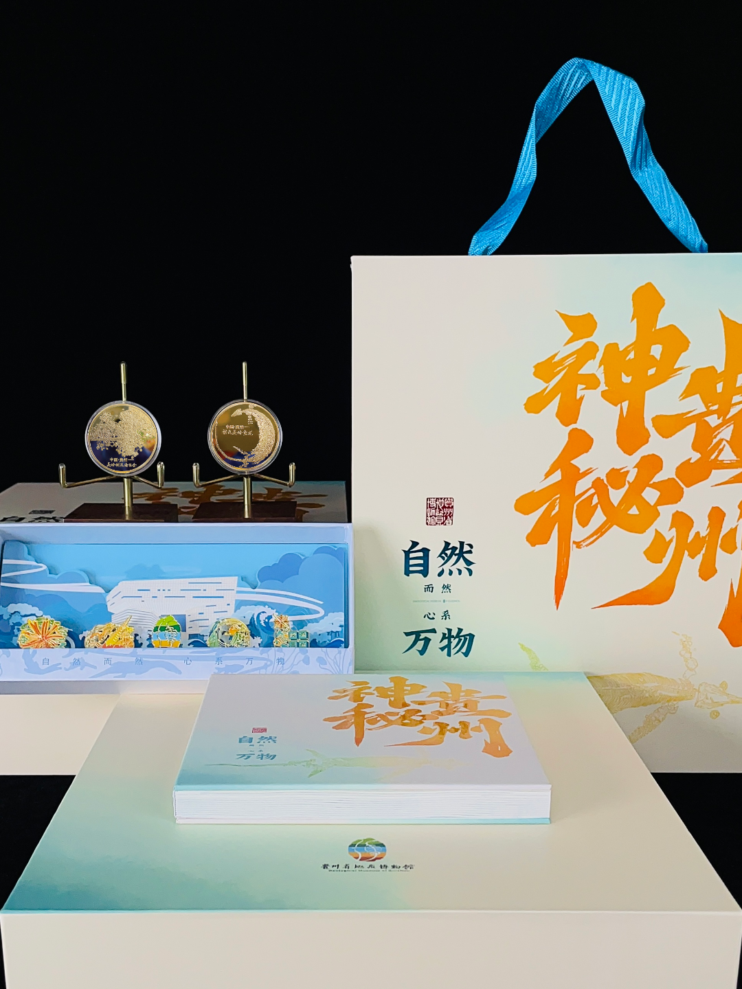 展示贵州省地质博物馆自主开发设计的“神秘贵州”文创礼盒、古生物手办、木雕灯等特色文创产品。