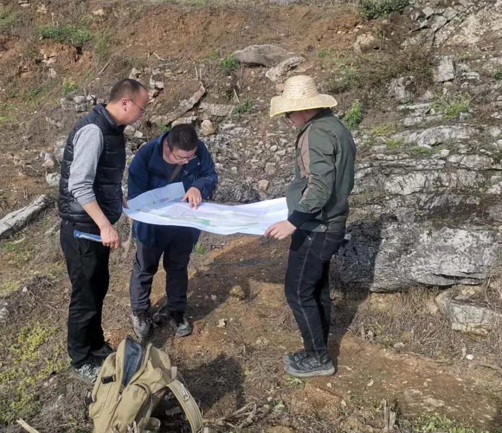 汪家寨铝土矿普查项目实施过程中,工作人员在野外进行填图工作。(受访者供图)