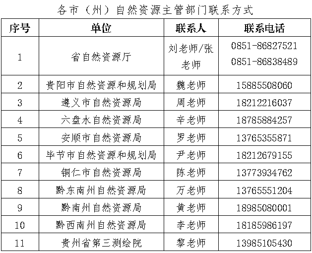 如需了解市(州)级赛详情,请参赛选手与属地自然资源主管部门联系,联系方式见下表: