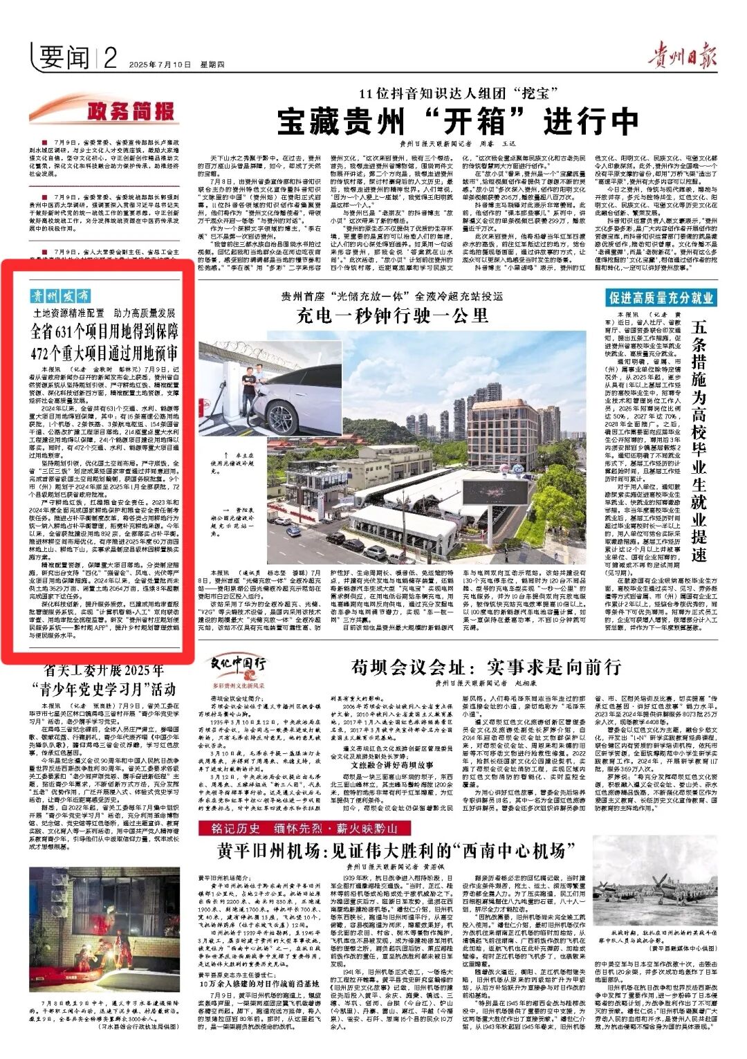 贵州日报 | 土地资源精准配置 助力高质量发展,全省631个项目用地得到保障 472个重大项目通过用地预审