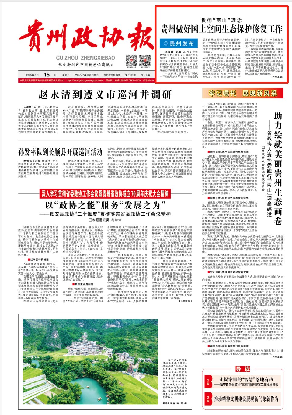 贵州政协报 | 贯彻“两山”理念——贵州做好国土空间生态保护修复工作