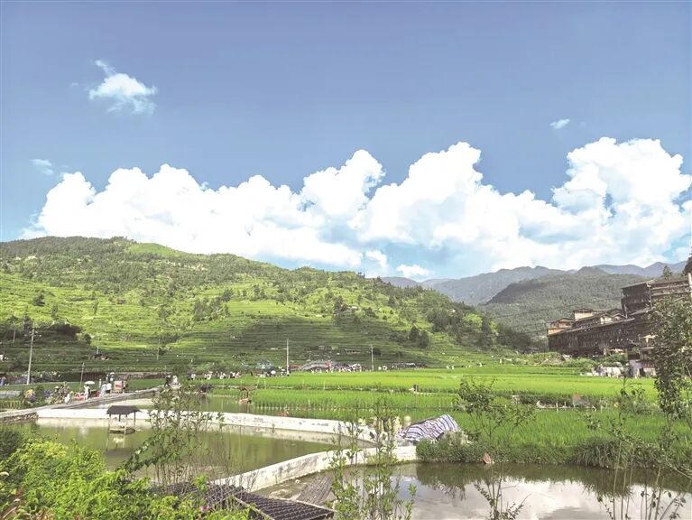 今年,该景区通过全域土地整治项目,完善苗寨内数公里的梯田生产道,通过“田、水、路、林、村”全要素综合整治,建成“田成方、渠相连、路相通”的农田生态系统,不仅方便了苗寨农户农业作业,还成功打造景区梯田观光区,拓展了核心景区容纳空间。