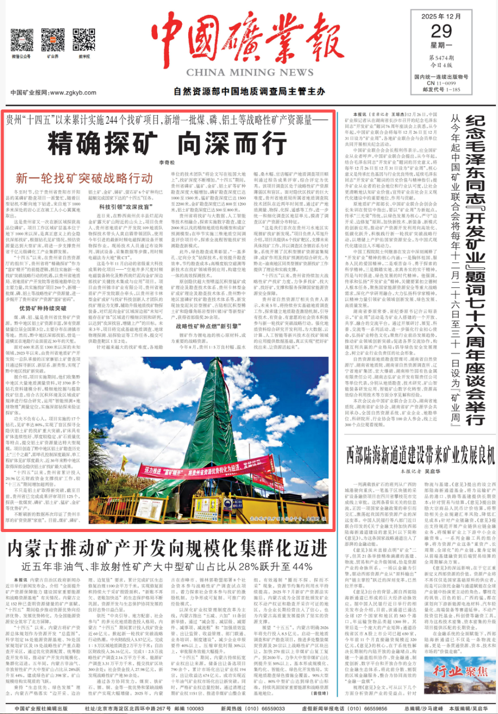 中国矿业报头条| 精确探矿 向深而行——贵州“十四五”以来累计实施244个找矿项目,新增一批煤、磷、铝土等战略性矿产资源量