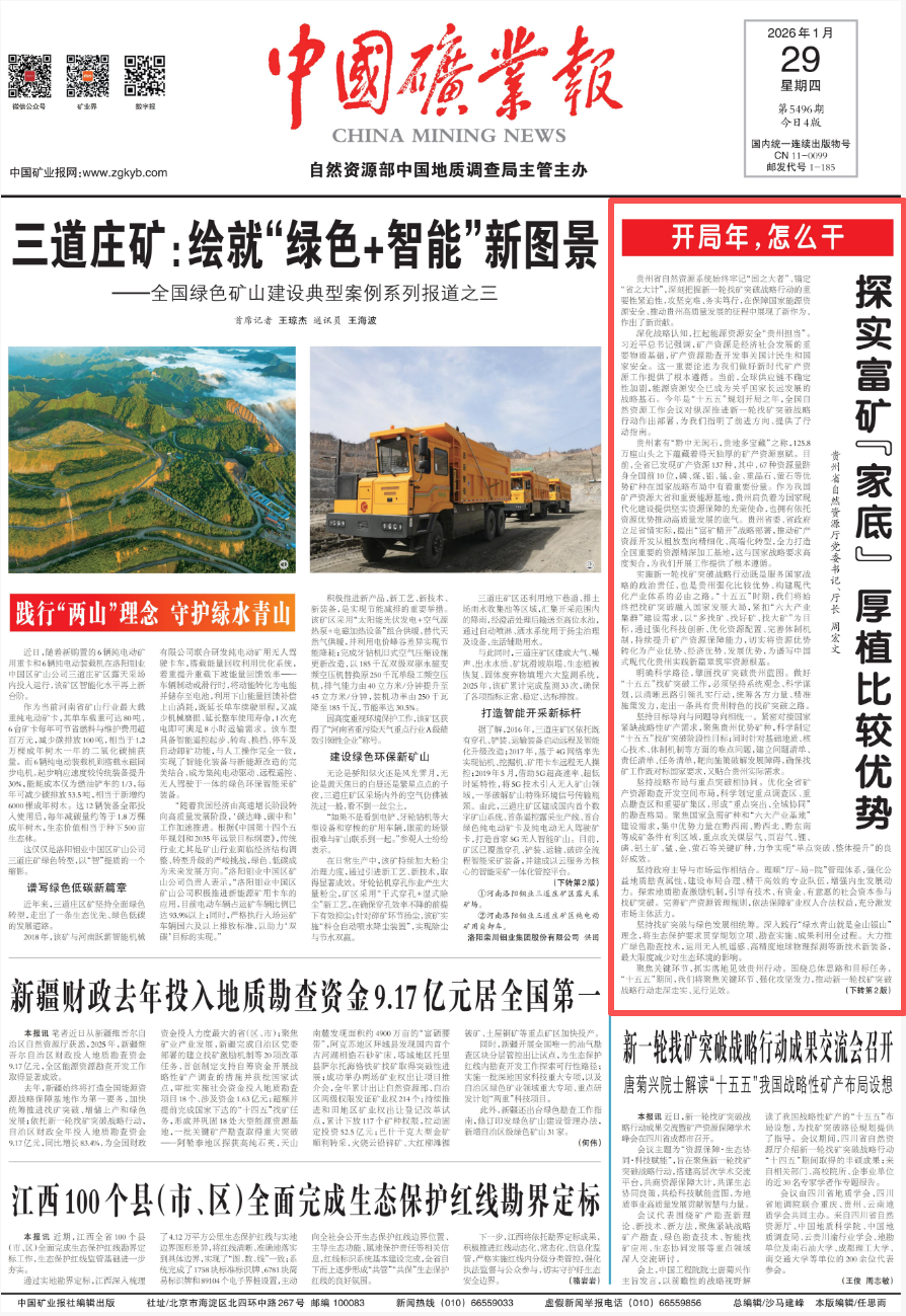 中国矿业报头版 | 贵州省自然资源厅党委书记、厅长周宏文:探实富矿“家底” 厚植比较优势