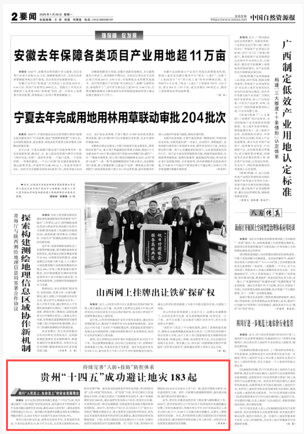中国自然资源报 | 持续完善“人防+技防”防控体系:贵州“十四五”成功避让地灾183起