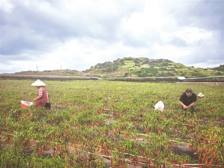 2025年夏季,清镇市麦格乡犁树桠矿山生态修复区复垦土地栽种的辣椒丰收。