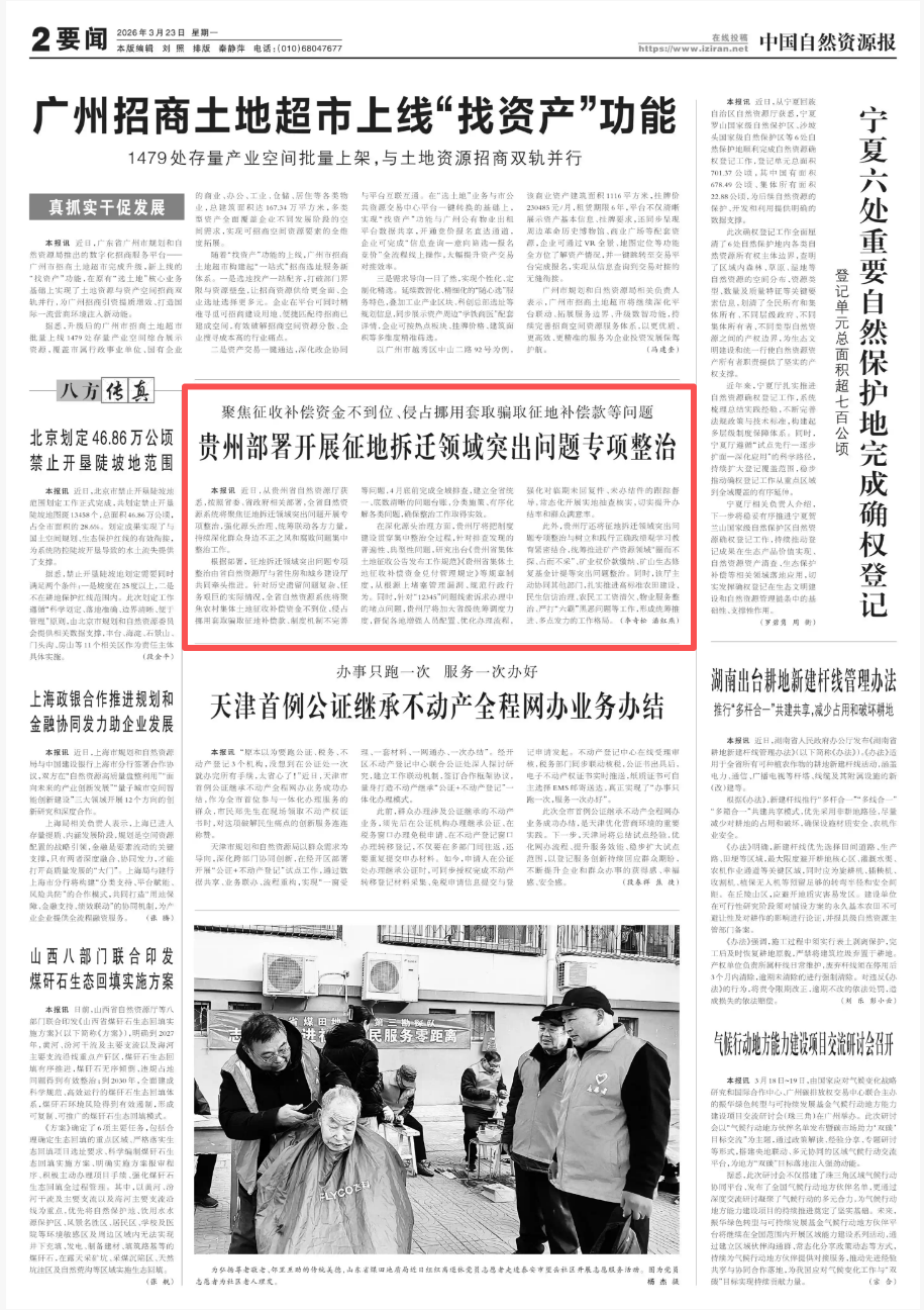 中国自然资源报 | 贵州部署开展征地拆迁领域突出问题专项整治
