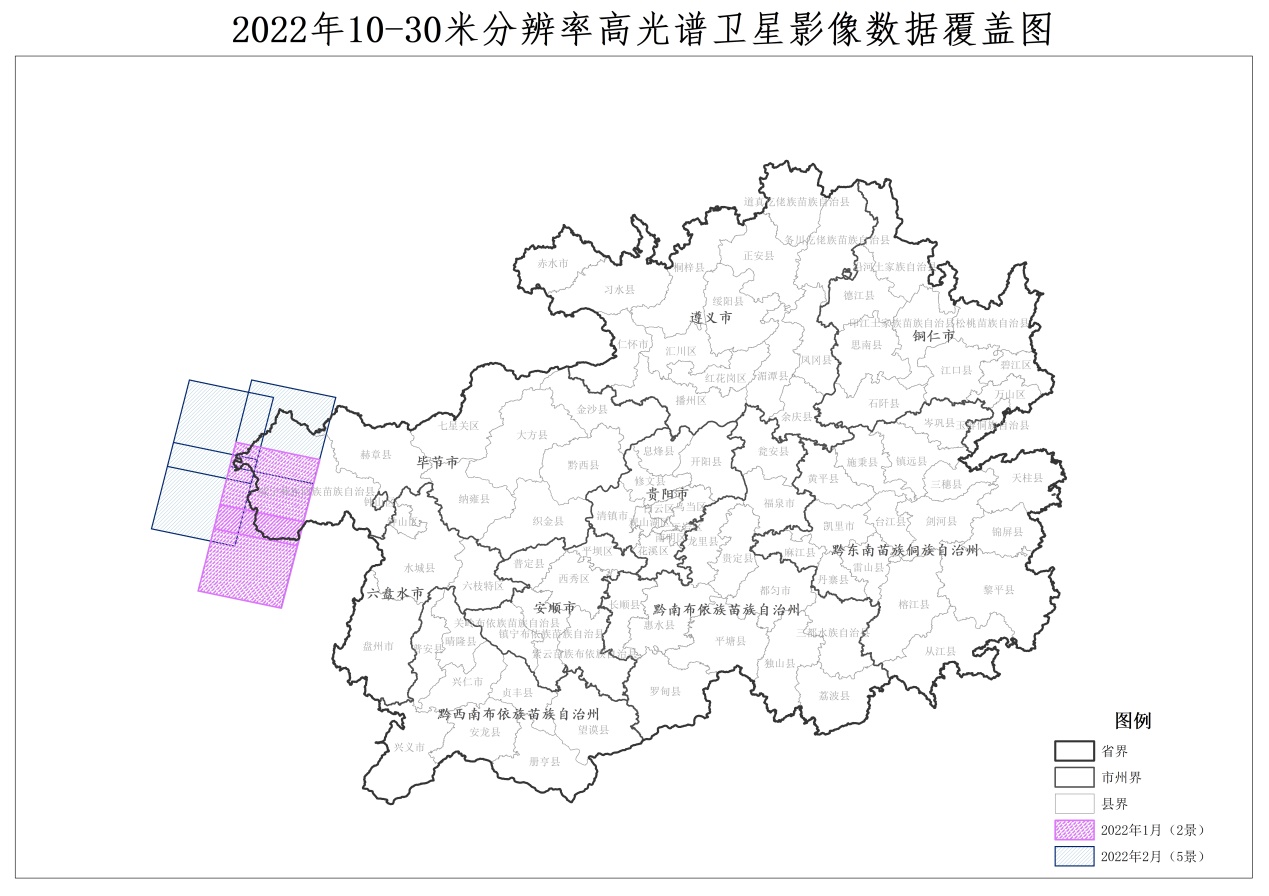 共计获取10-30米分辨率光学卫星遥感影像7景,数据量6.17GB,累计面积3.02万平方公里,省内实际覆盖面积0.99万平方公里。其中,2022年2月获取的5景,数据量4.41GB,累计面积2.16万平方公里,省内实际覆盖面积新增0.71万平方公里,具体覆盖情况如下图: