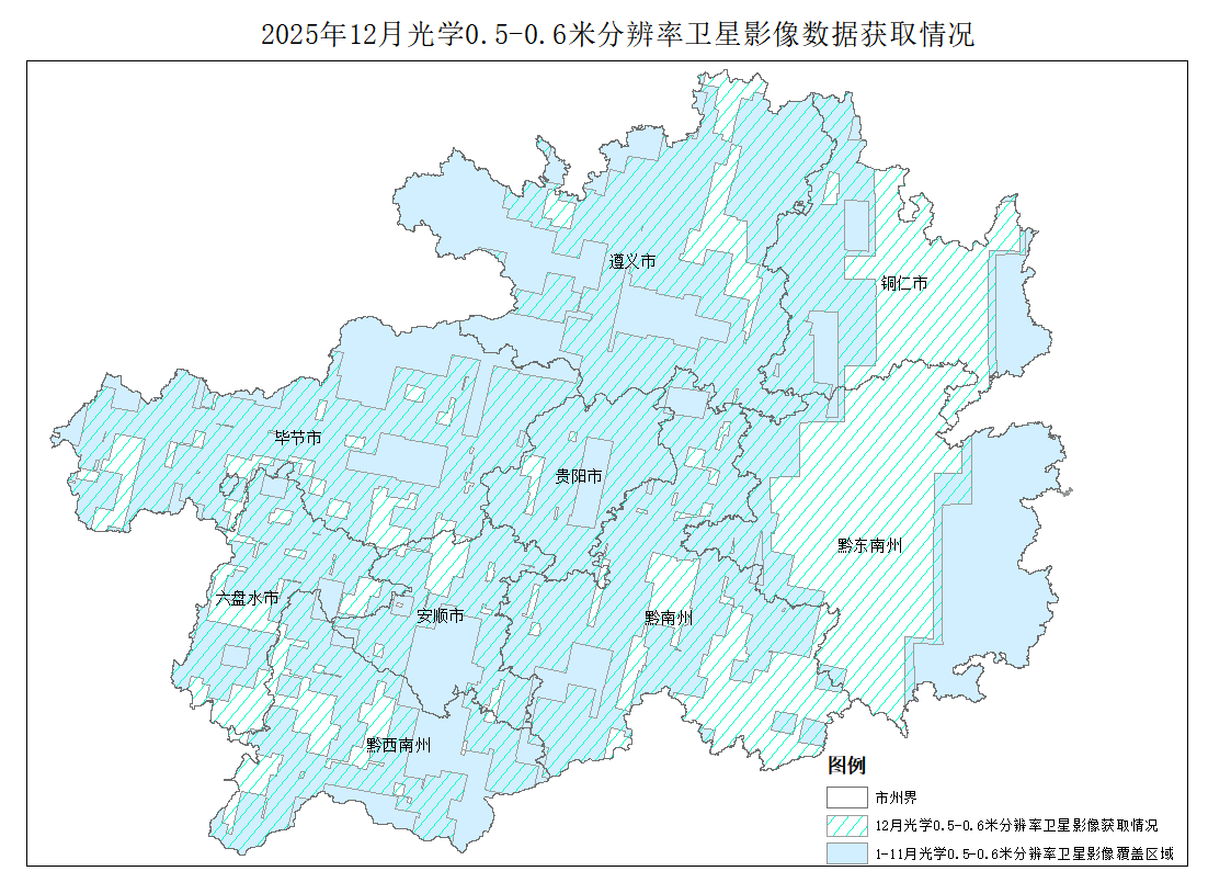 12月获取52景,数据量4.68GB,省内实际覆盖面积16.68万平方公里,占全省面积94.77%。具体覆盖情况如下图: