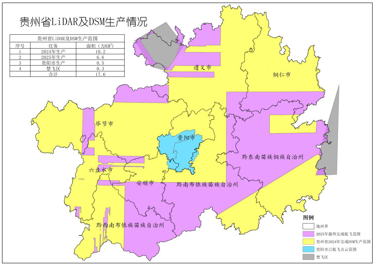 全年共获取的1有效点/平方米机载激光雷达点云数据总面积6.6万平方千米,已100%完成年度计划。完成情况图如下: