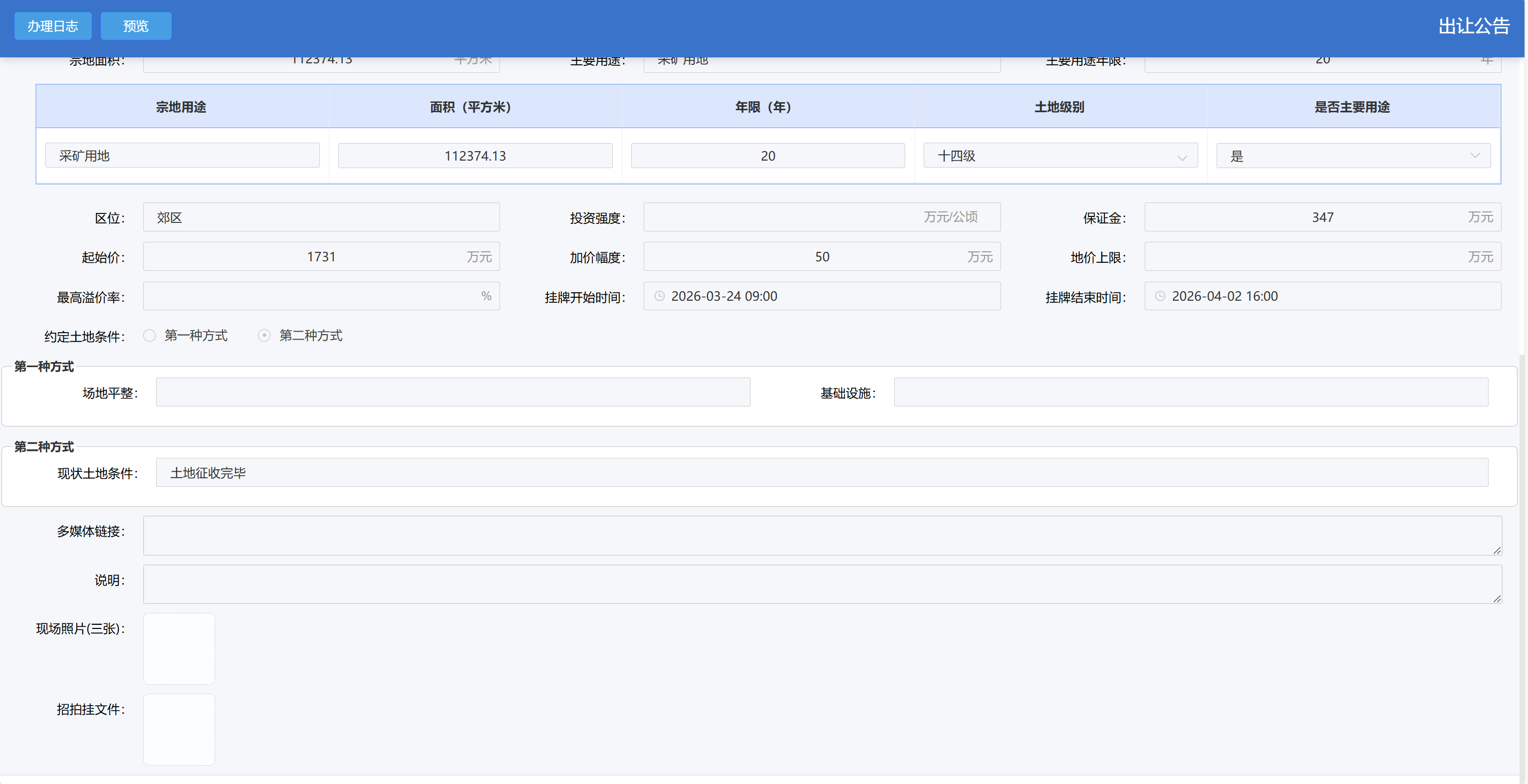 土地出让划拨公告