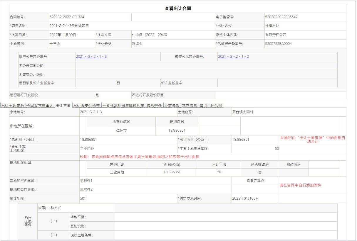 仁怀市土地出让结果公示(520382-2022-CR-324)